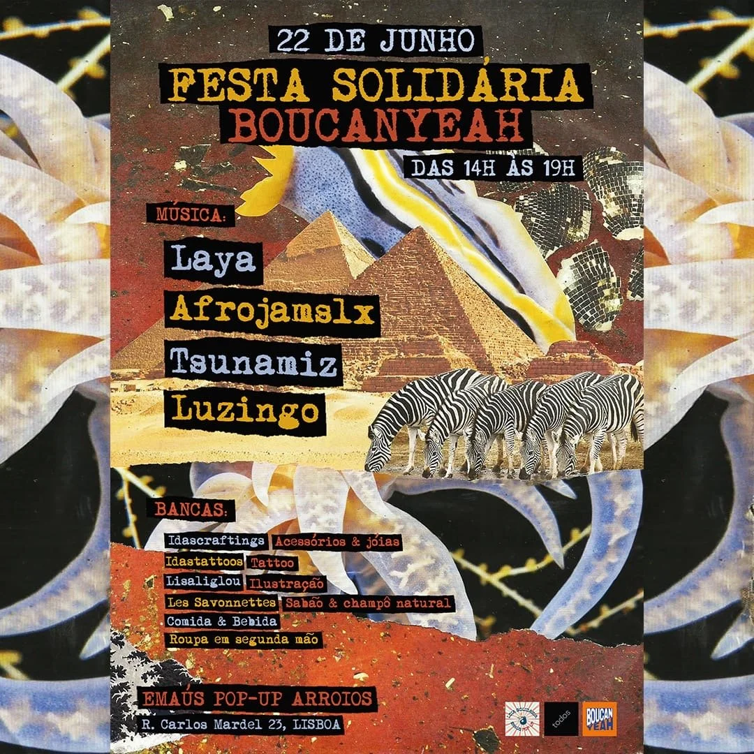 Junta-te à Festa Solidária Boucanyeah no Emaús Arroios Pop-Up. Este evento especial celebra a arte, a criatividade e a economia solidária. Haverá música ao vivo, workshops de tatuagem, ilustração e comida, bem como a venda de roupa, mobiliário e artigos de decoração em segunda mão. Desfruta do ambiente festivo neste magnífico espaço ao ar livre, perfeito para um sábado de verão ao sol de Lisboa. Não percas esta oportunidade de partilhar connosco um momento de convívio e solidariedade!